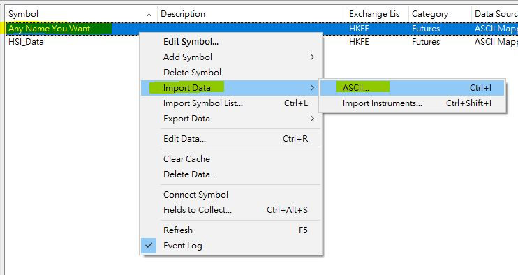 第五步 - 按右鍵 > 選 Import Data > ASCII